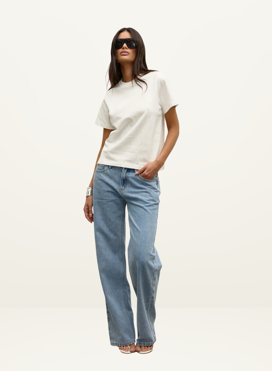 Bassike Slouch Side Step T-Shirt in Steel Blue