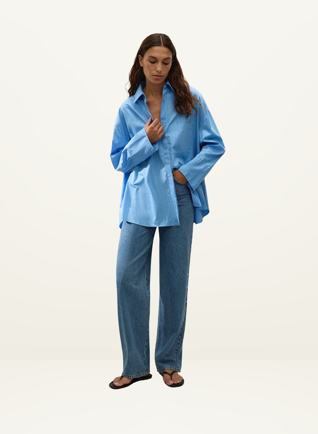 Faithfull Hedda Top in Azul Mico Pinstripe