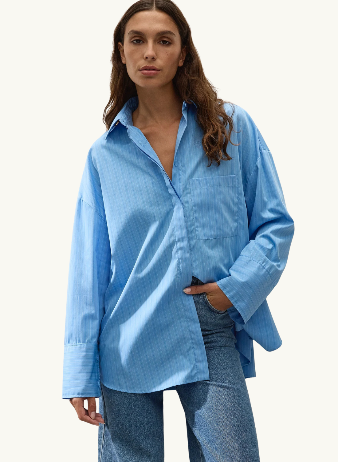 Faithfull Clemente Shirt in Mico Pinstripe Azul