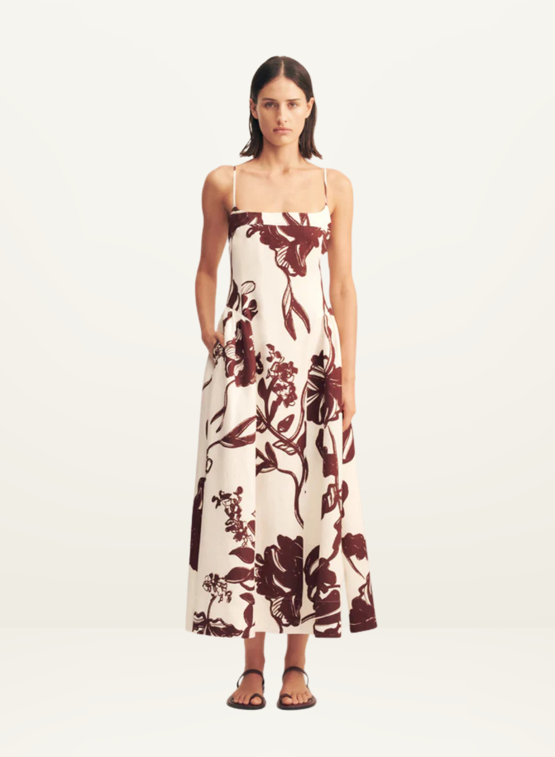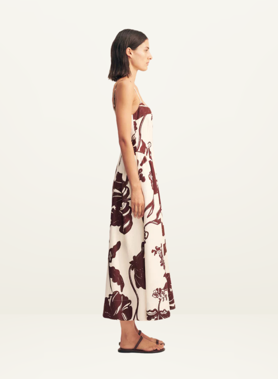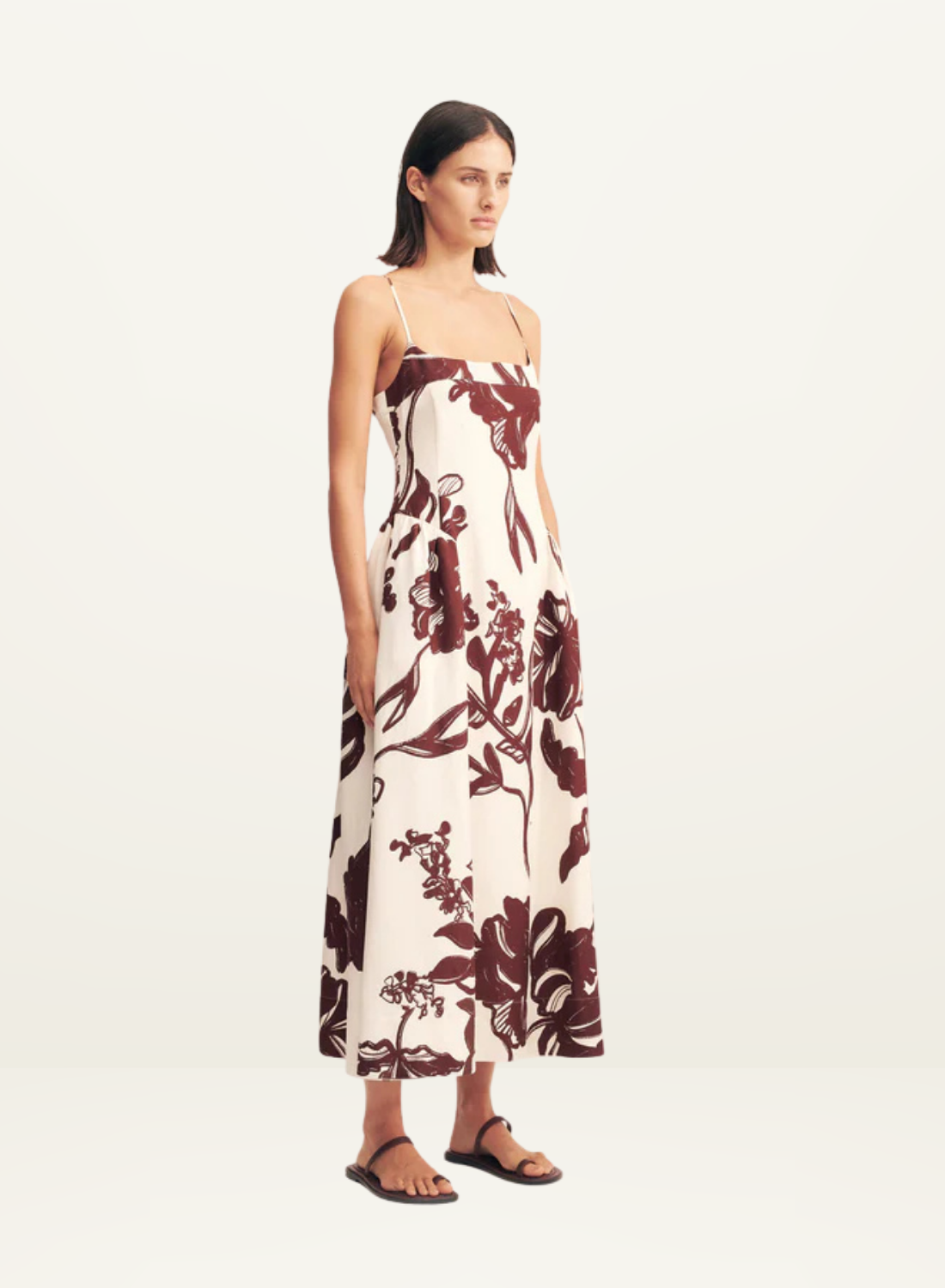 Shona Joy Emmett Square Neck Panelled Midi Dress in REDWOOD
