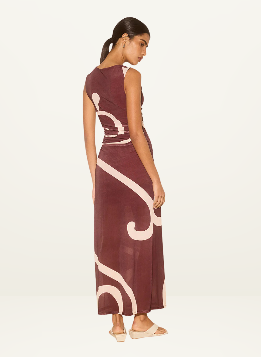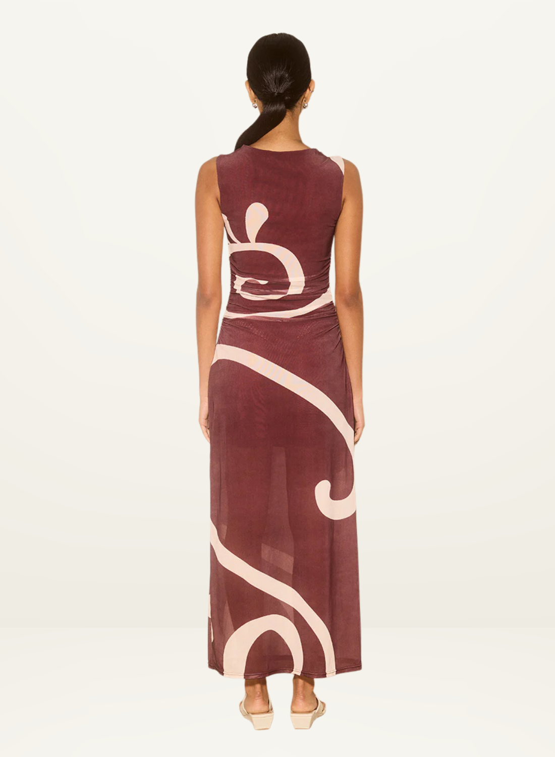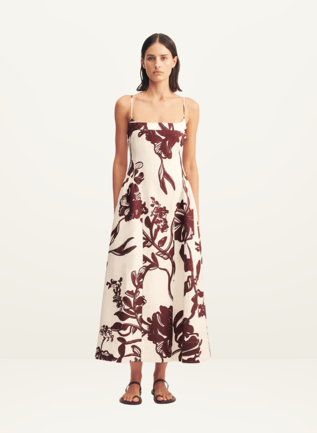Shona Joy Emmett Square Neck Panelled Midi Dress in REDWOOD