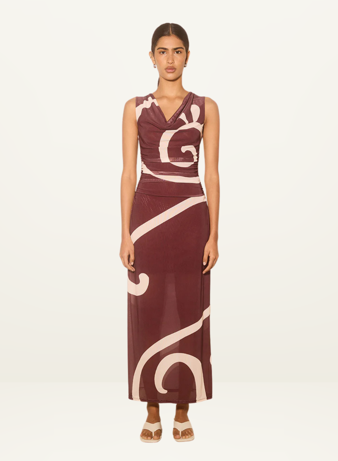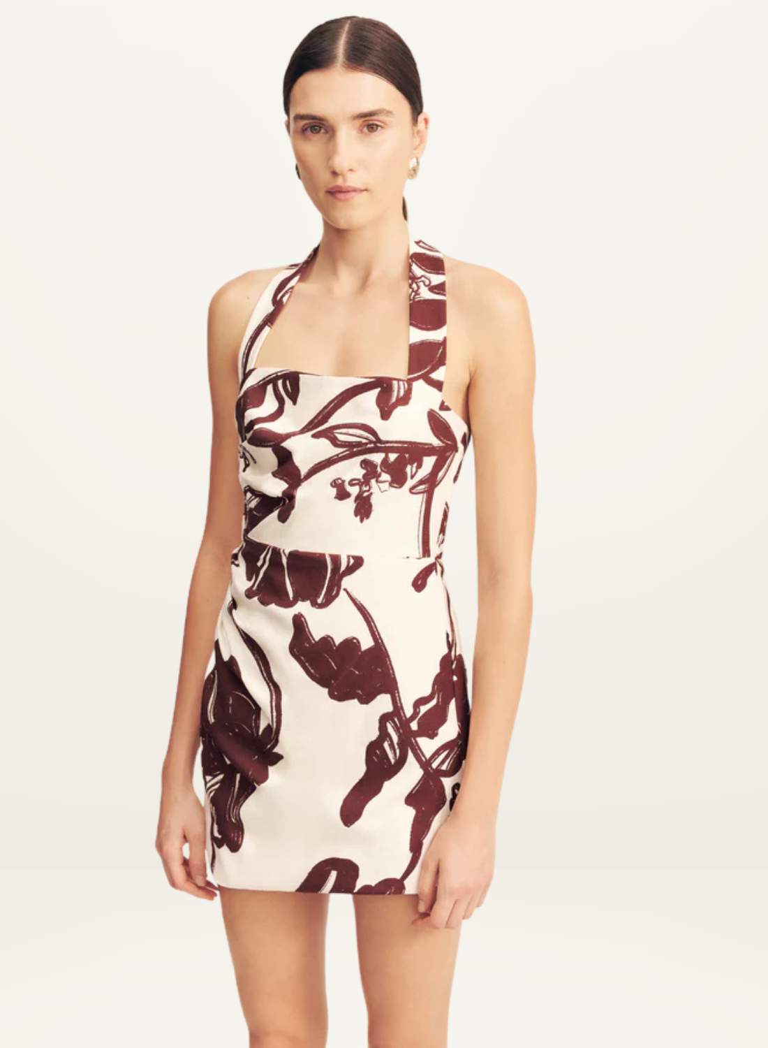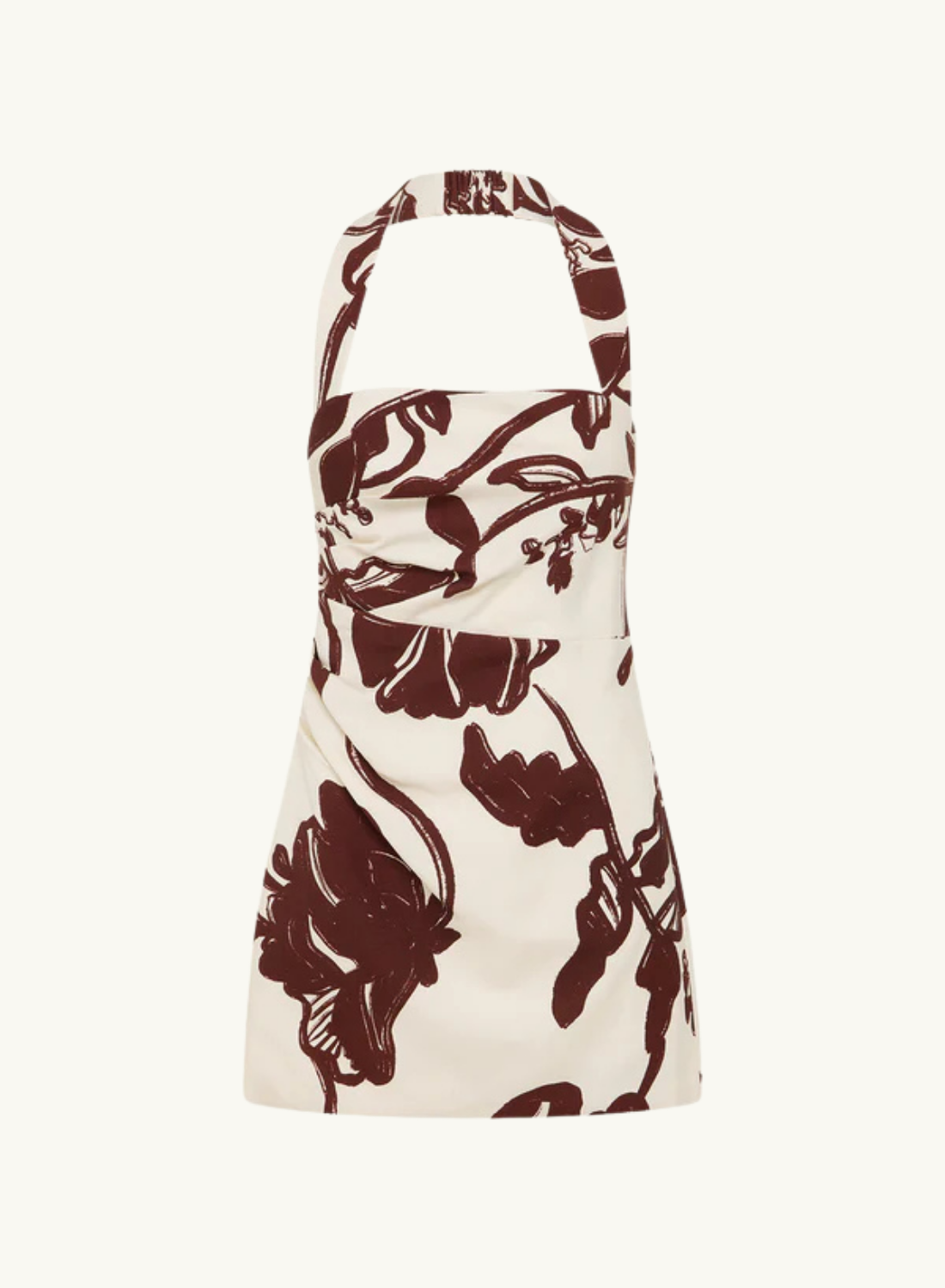 Shona Joy Emmett Halter Draped Mini Dress in REDWOOD