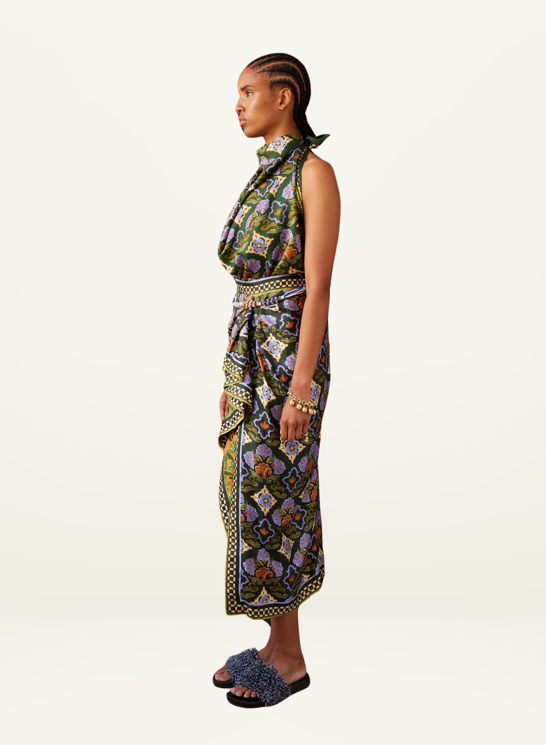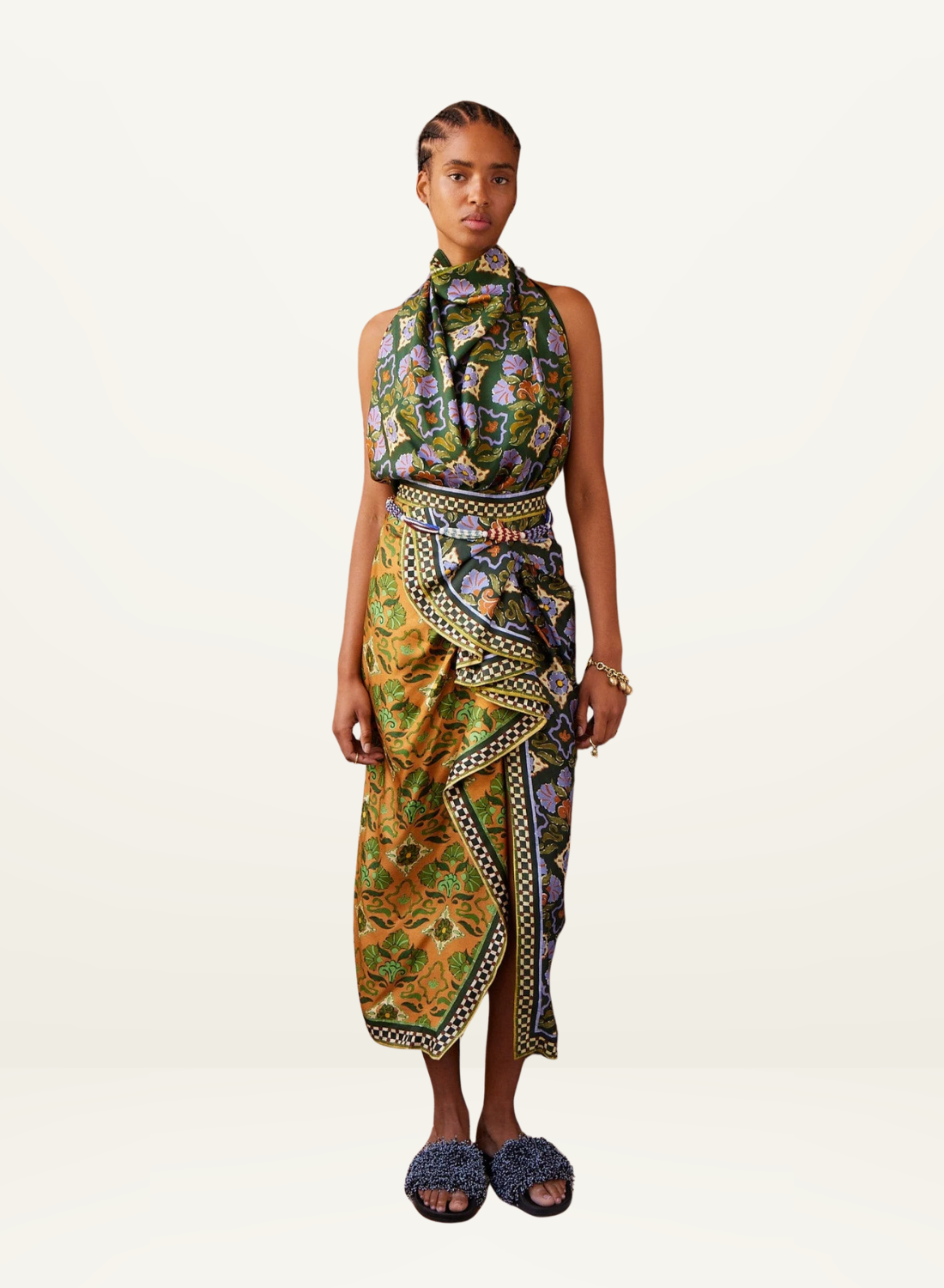 Alemais Soleil D'Amour Silk Sarong Skirt in RUST