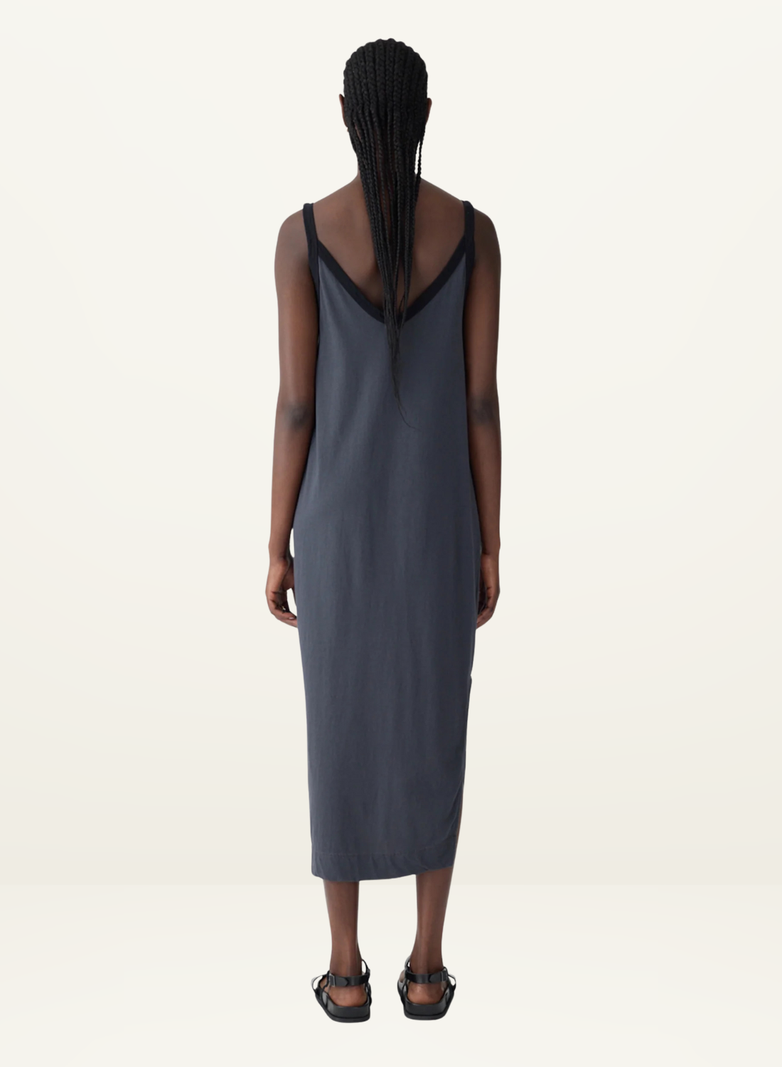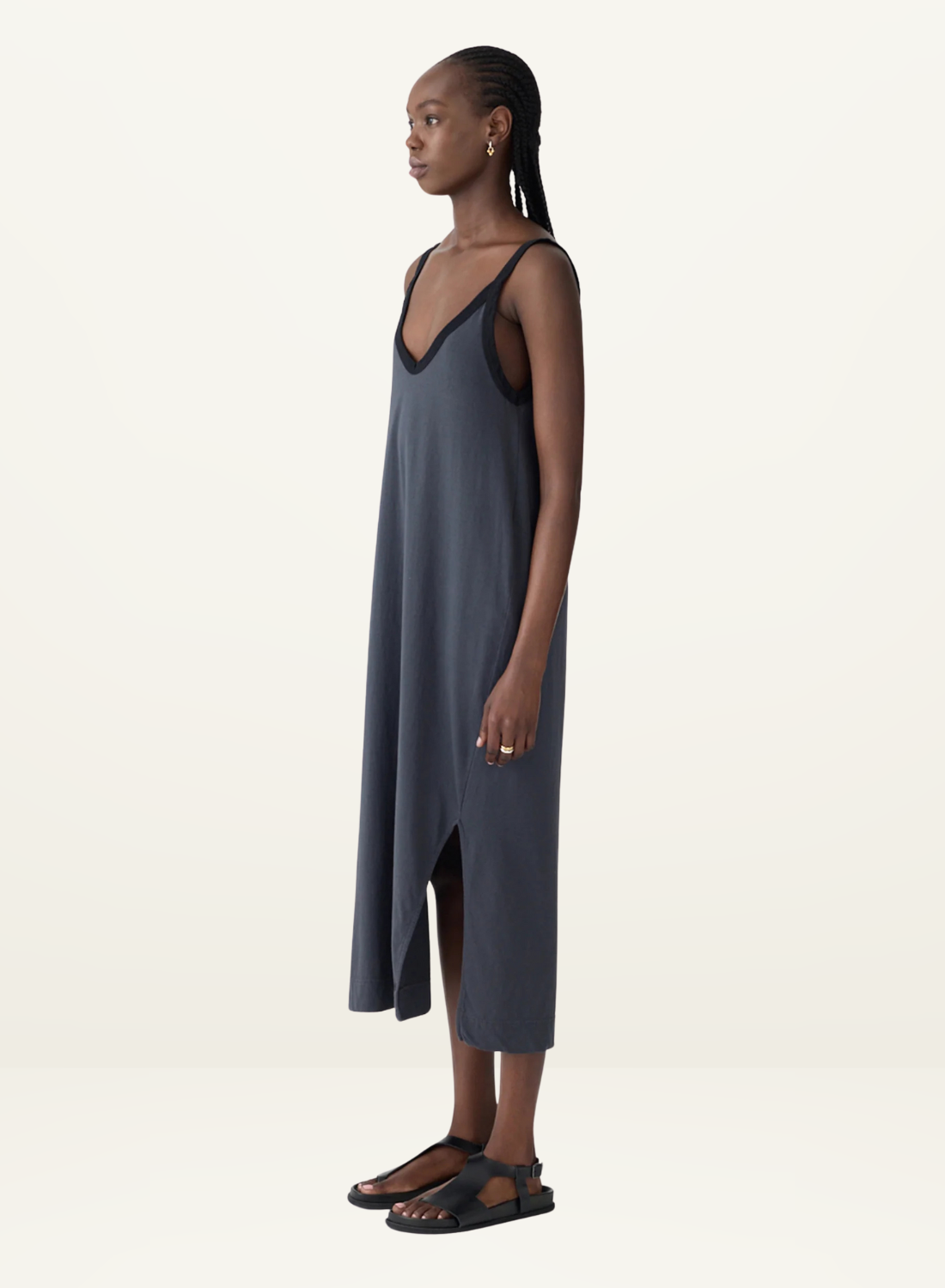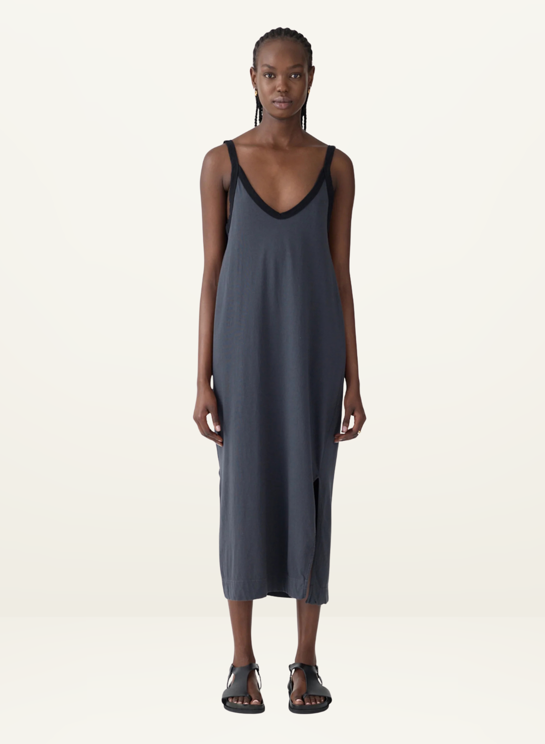 Bassike Contrast V-Neck Slip Dress in Washed Navy / Black