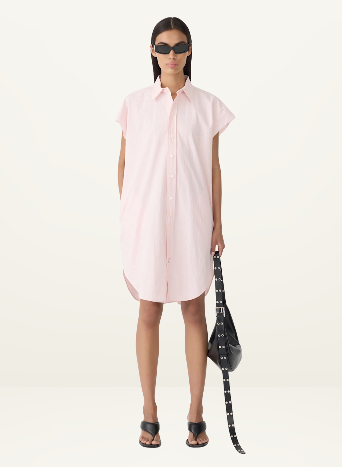 Bassike Crushed Cotton Sleeveless Dress in Powder Pink