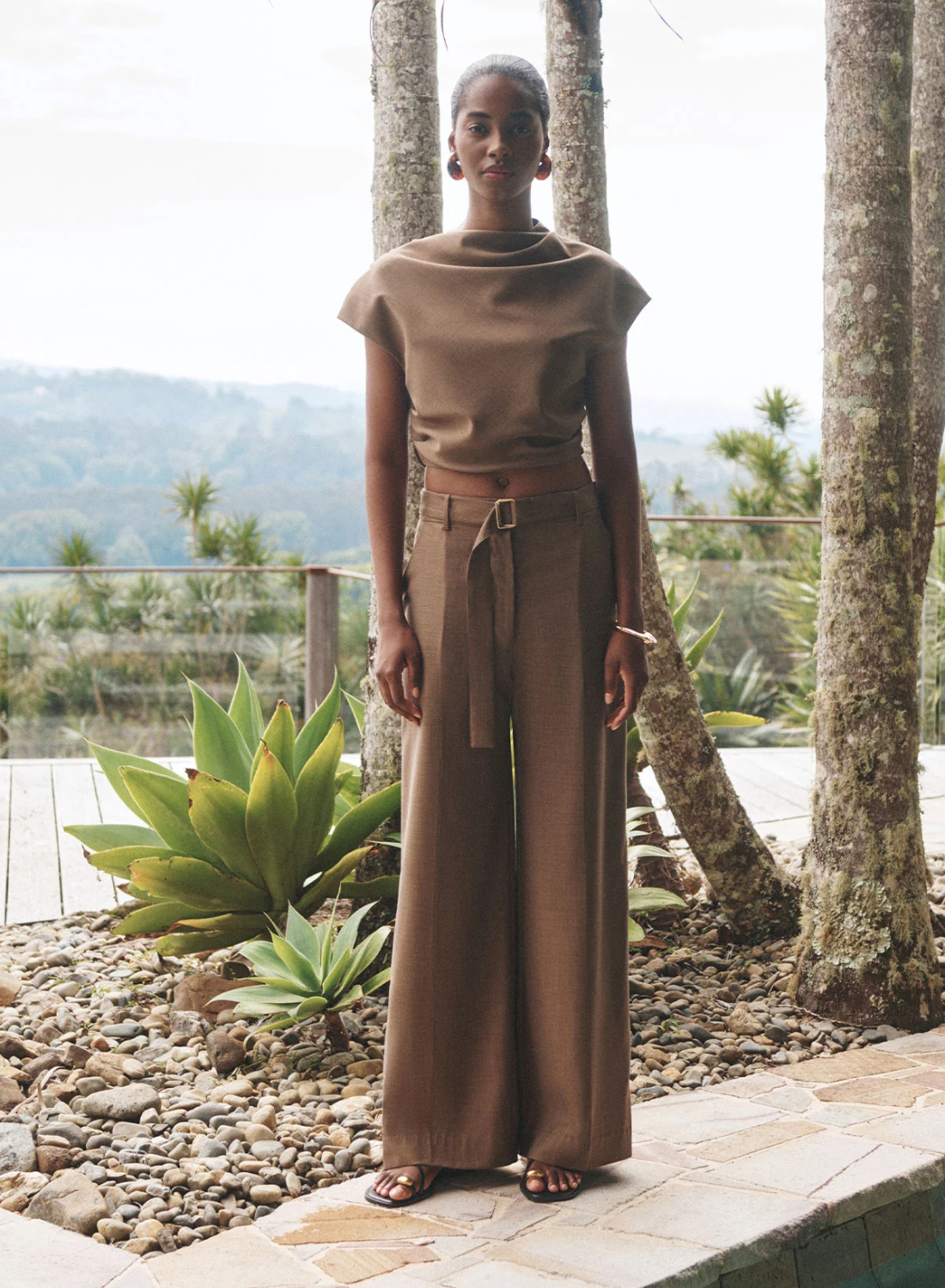Bec + Bridge Astrid Wide Leg Pant in Ecru