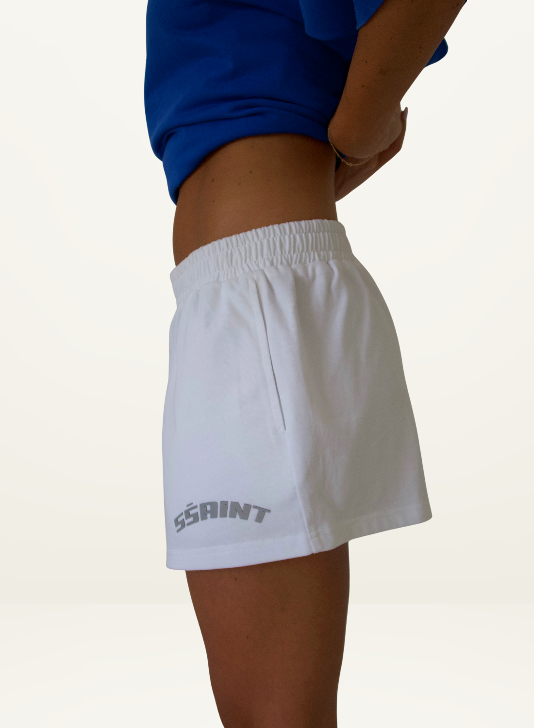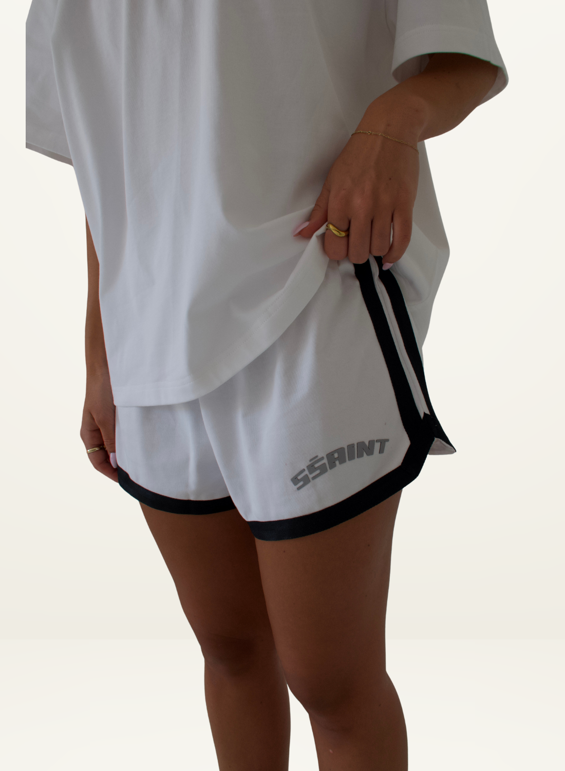 SSAINT Reflective Logo Shorts in White