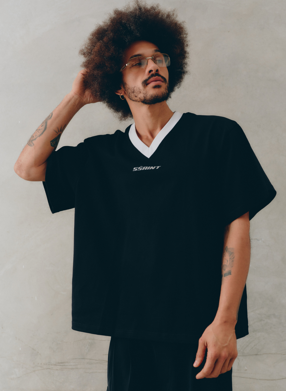 SSAINT Reflective V Neck Tee in Black