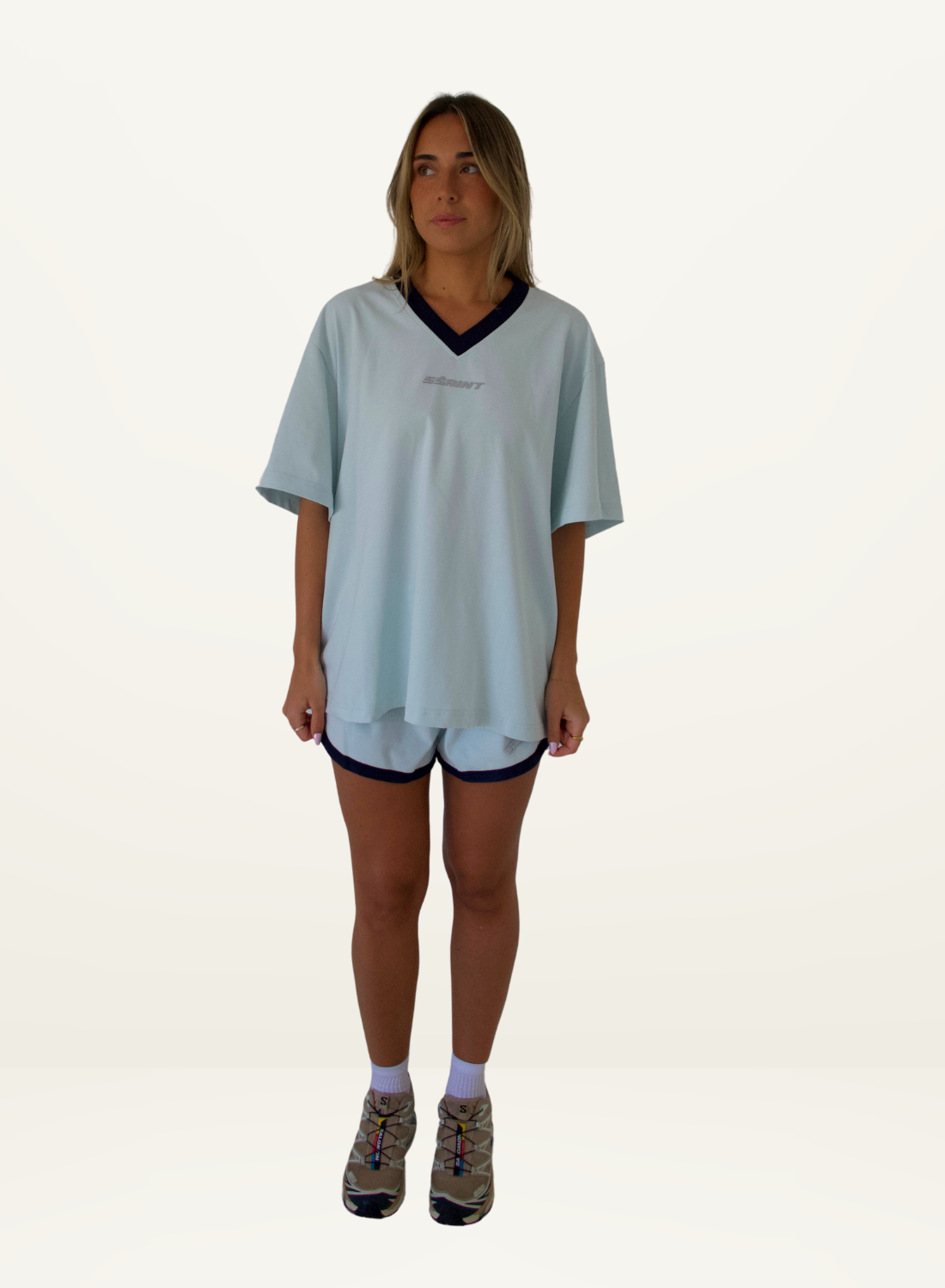SSAINT Reflective V Neck Tee in Mint