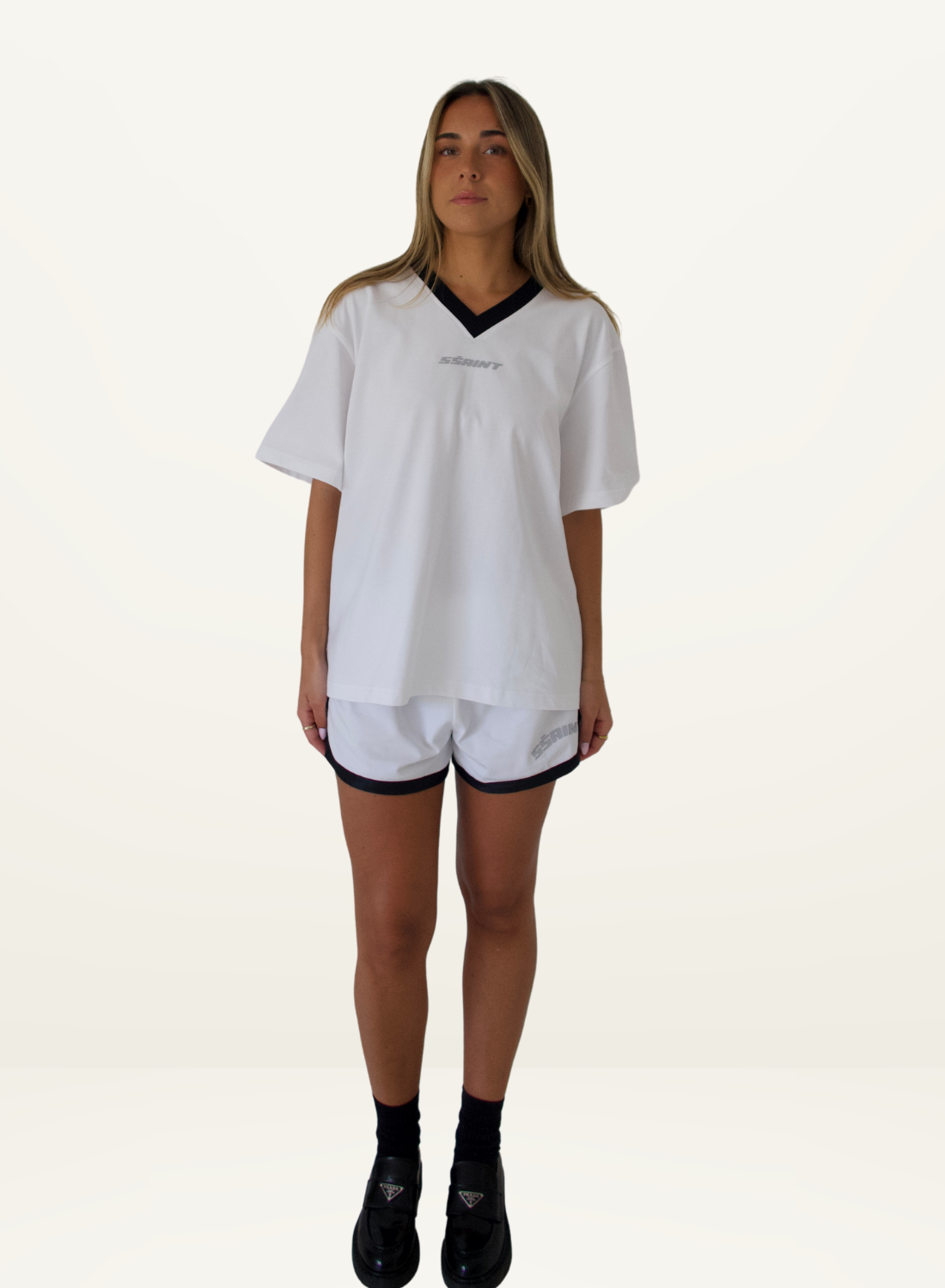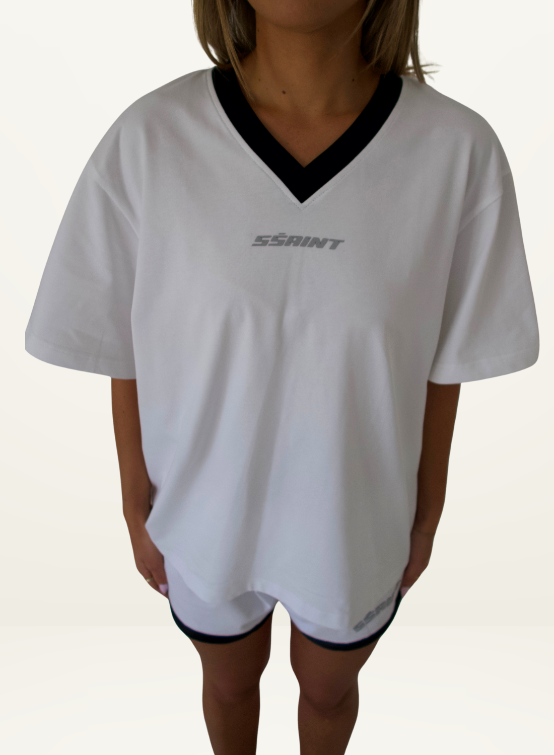 SSAINT Reflective V Neck Tee in White