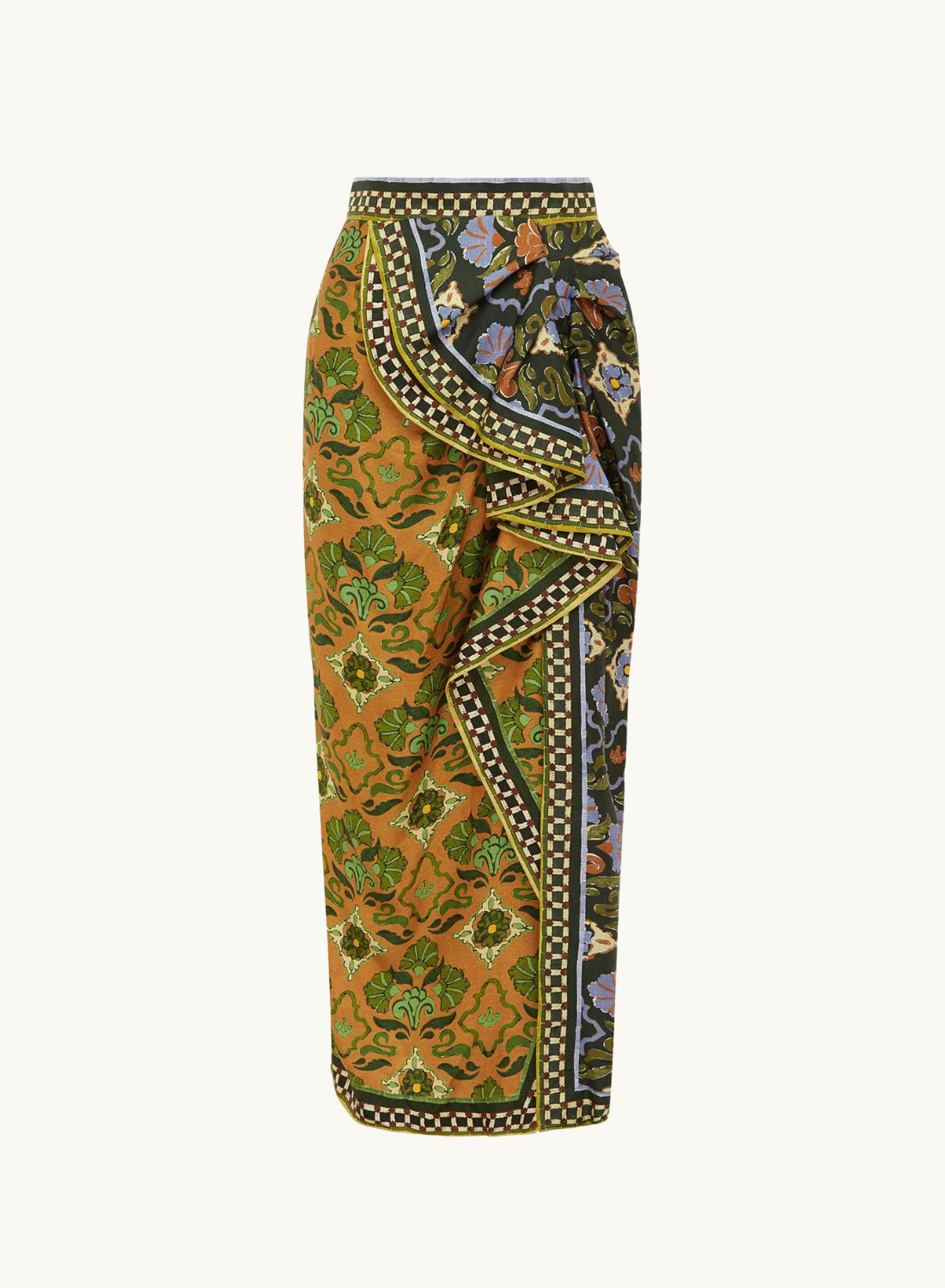 Alemais Soleil D'Amour Silk Sarong Skirt in RUST