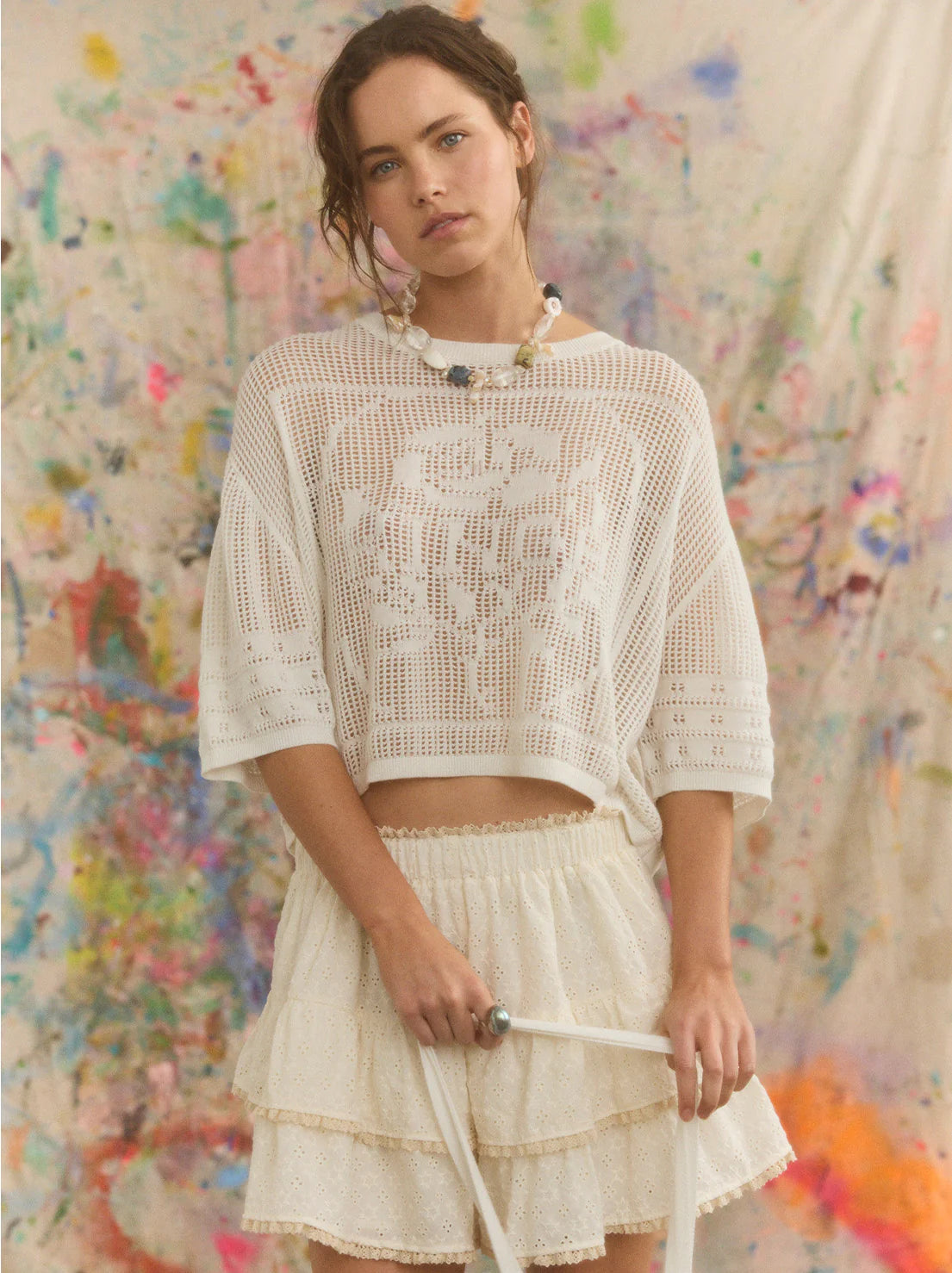 Kinga Csilla Rosa Crochet Tee in White