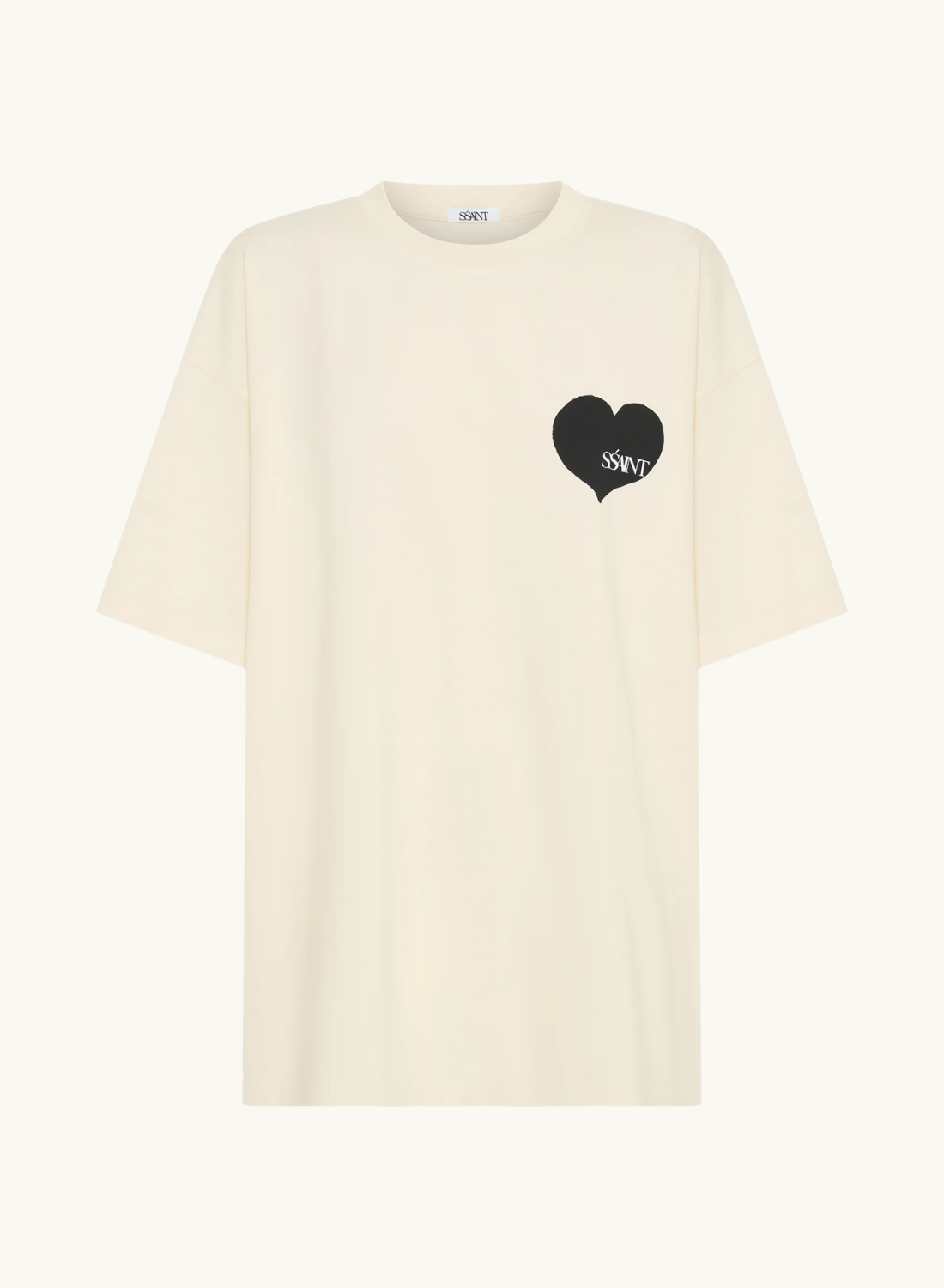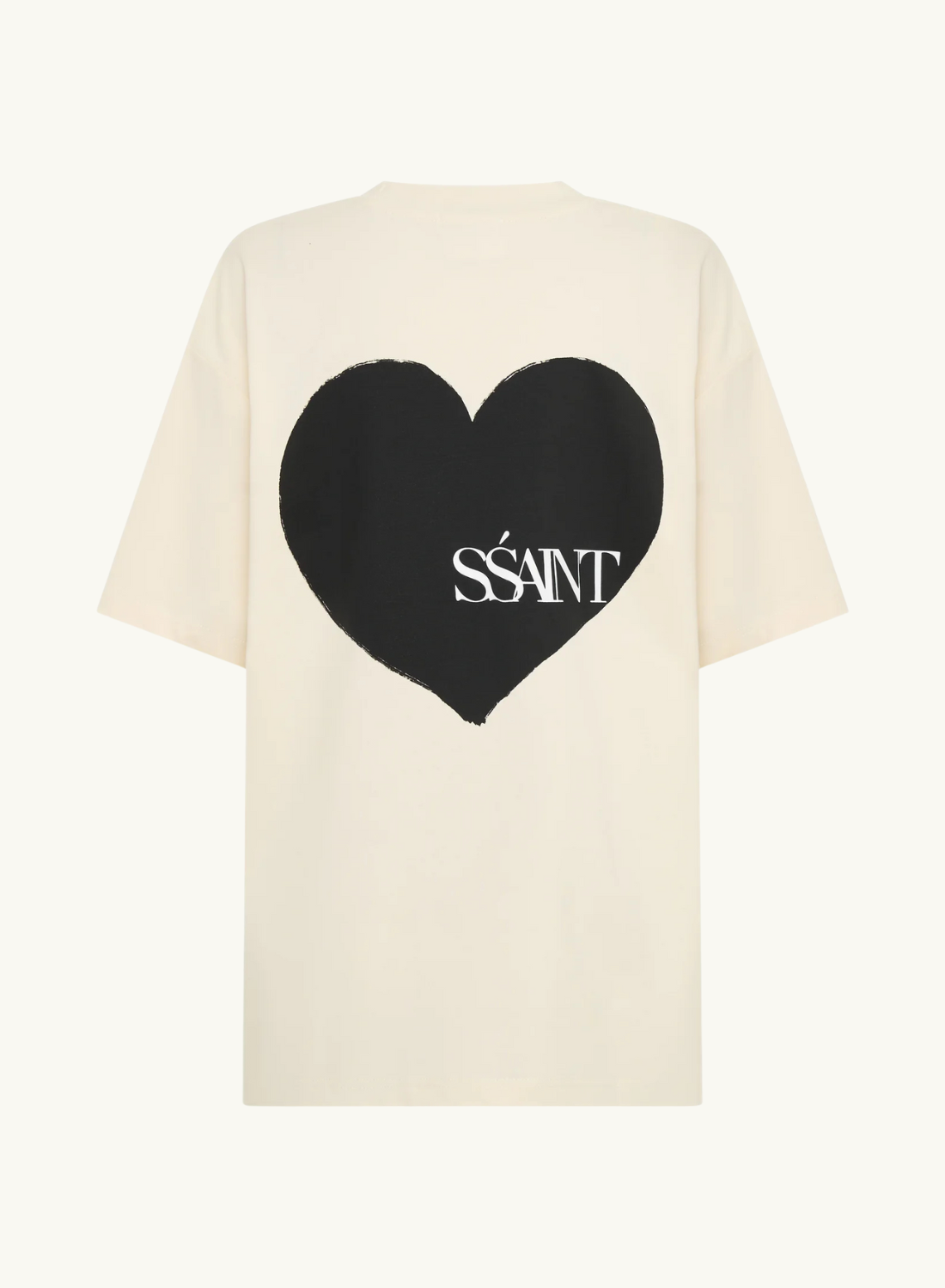 SŚAINT Black Heart Tee in CREAM with BLACK // COMING SOON