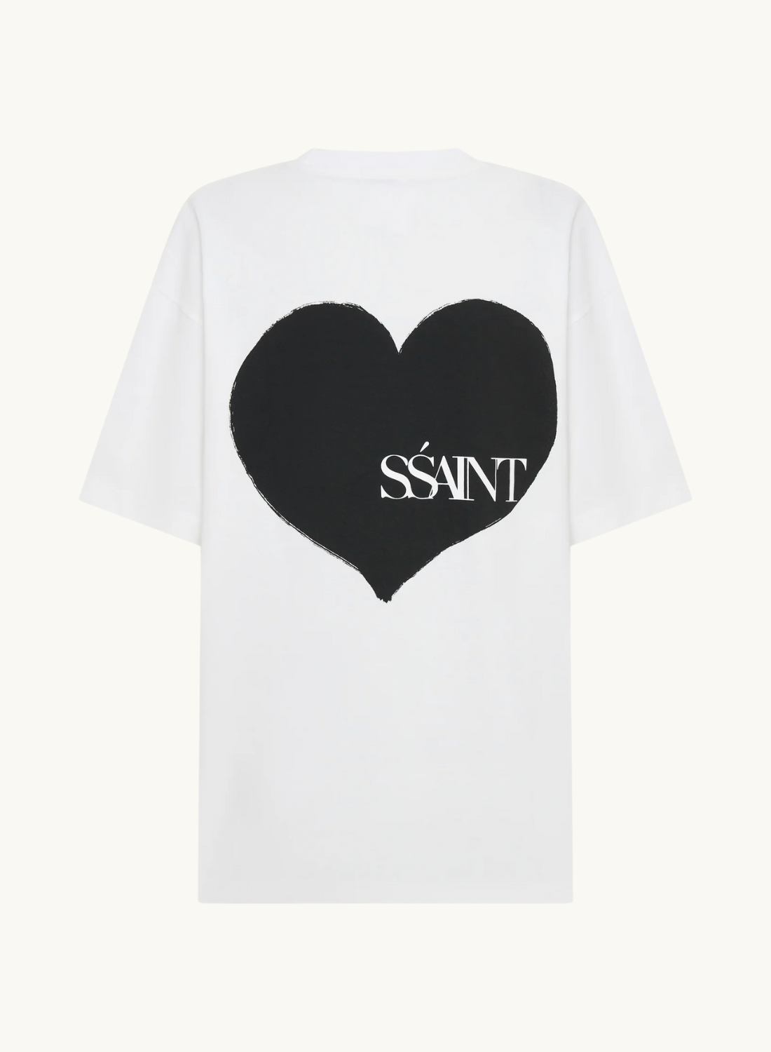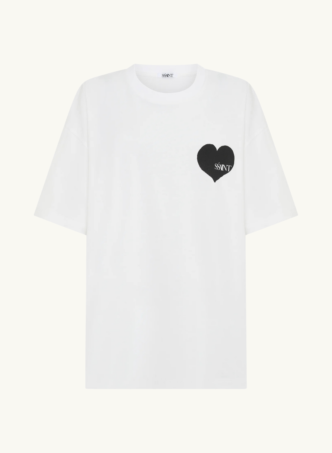 SŚAINT Black Heart Tee in WHITE with BLACK // COMING SOON