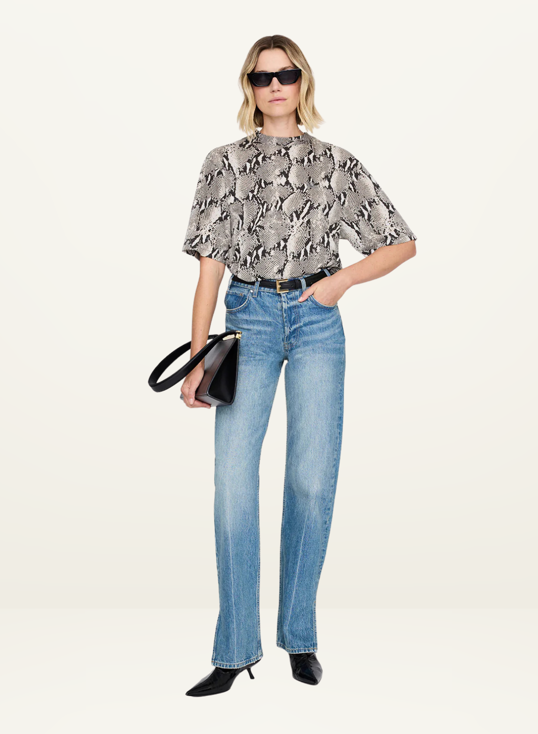 Bassike Slouch Side Step T-Shirt in Steel Blue