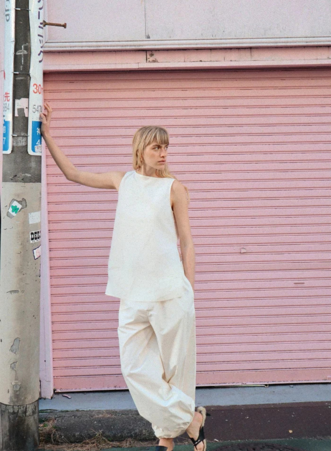 Bassike Fine Bind Scoop Neck Tank in Washed Navy