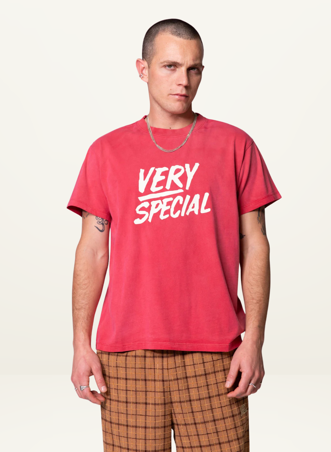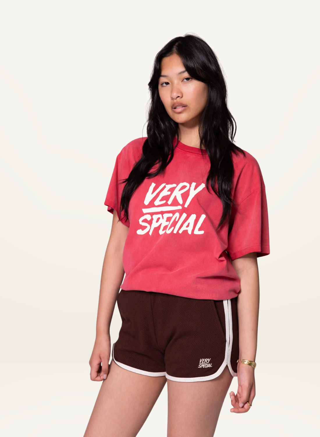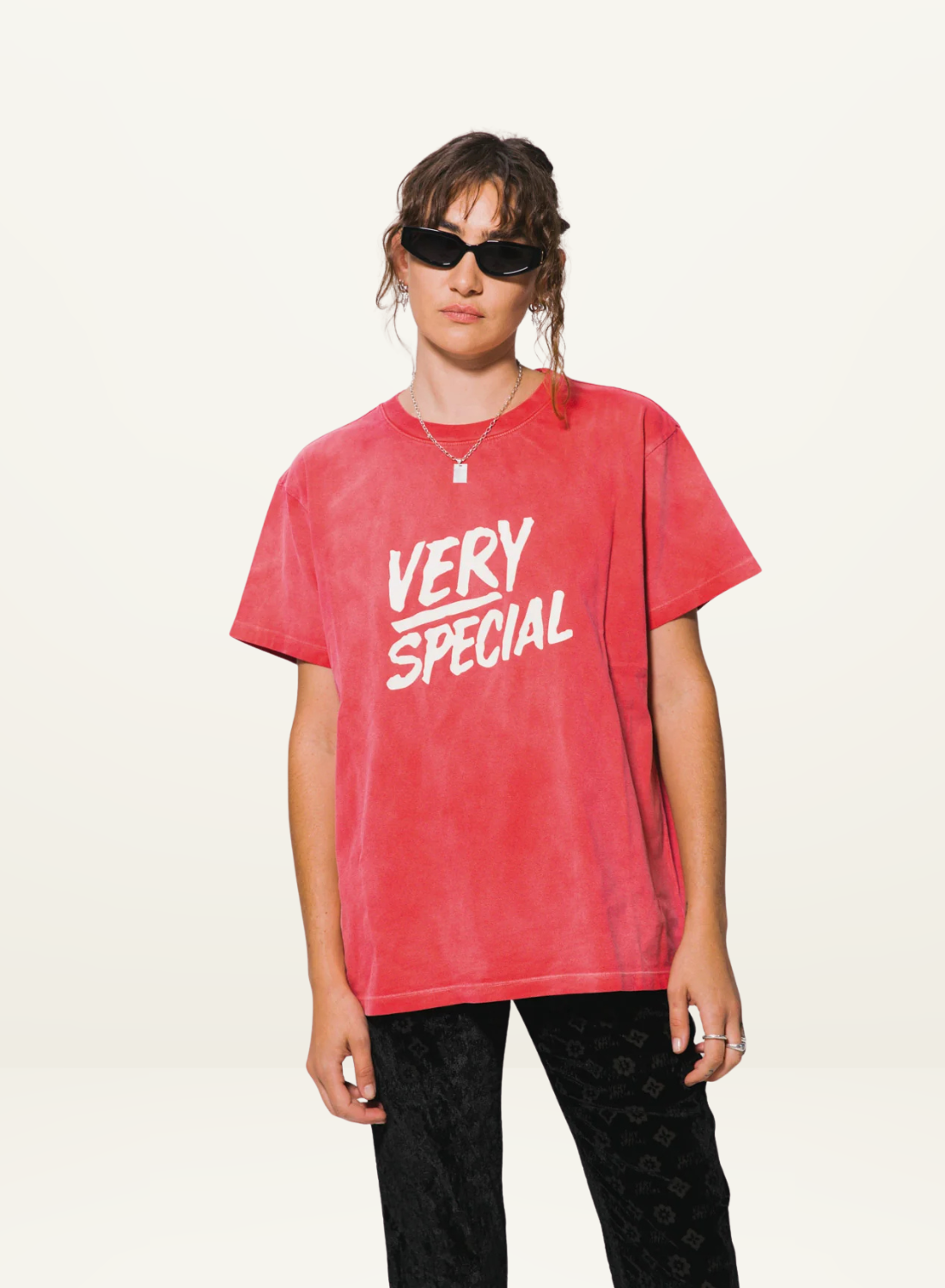 Something Very Special Stacked Logo Tee in Washed Red / LAST ONE XL